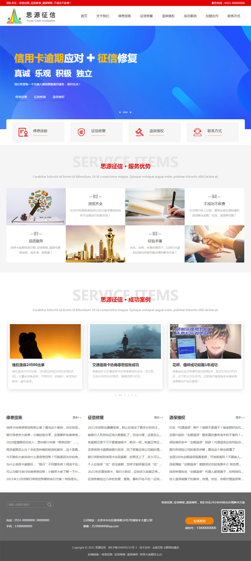 思源征信網提供征信修復、信用卡停息掛賬、信用卡逾期協商分期、保單維權退保、房貸車貸網貸逾期等服務!依照征信管理條例要求,針對信用不良的用戶,私人訂制、量身定做合理快捷的方案,通過專業團隊讓助您早日上岸,享受幸福每一天!