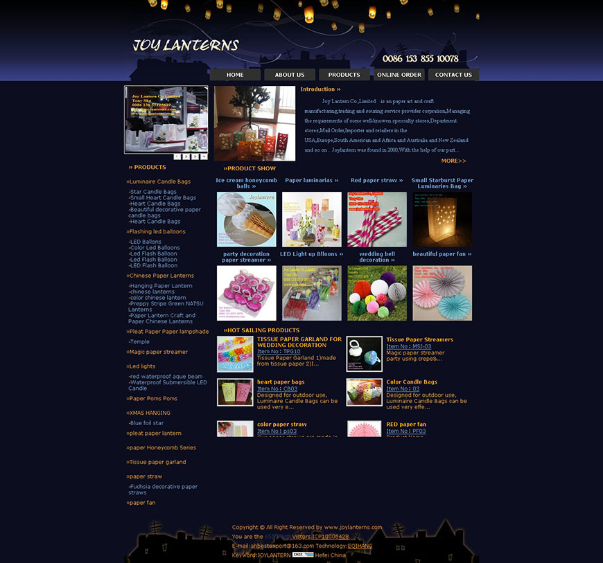 Joylantern was found in 2000,With the help of our partners,After some years development,The Company has setted up three production based in AnHui ,Zhejiang ,Jiangsu,The products we now offer are avaiable in 20 countries .