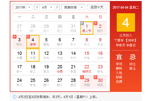 根據國務院辦公廳通知,我公司定于2017年4月2日至4月4日放假,4月5日(星期三)正式上班。