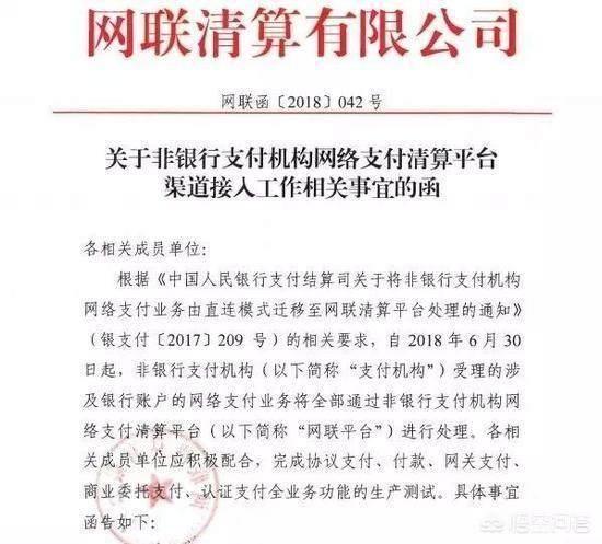 幾家歡喜幾家愁,可是,這一切或許都將在6月30日終結(jié),因?yàn)榻找延兄匕跸⒎Q(chēng):網(wǎng)聯(lián)公布了網(wǎng)聯(lián)涵(2018)42號(hào)文件,其名稱(chēng)為“關(guān)于非銀行支付機(jī)構(gòu)網(wǎng)絡(luò)支付清算平臺(tái)渠道接入工作相關(guān)事宜的函”。 在這份文件中聲明中,自2018年6月30日起,銀行將關(guān)閉與第三方支付平臺(tái)的直連,所有第三方支付都將無(wú)權(quán)代扣,但是,如果堅(jiān)持選擇銀行卡支付的話(huà),支付寶和微 信就會(huì)自動(dòng)跳轉(zhuǎn)到銀聯(lián)支付。