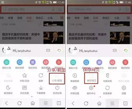 還有其他一些手機出廠自帶的瀏覽器也有部分是支持截取網頁完整版的,因各個手機瀏覽器都不同教授就不一一列舉,大家只要知道,如果支持,那么操作步驟都是大同小異的,進入主菜單欄后看看是否有截全屏、保存網頁按鈕,根據提示直接保存就可以了。