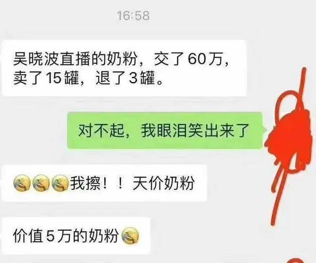 同樣的,吳曉波是穩賺不賠,倒是苦了那個國產奶粉商家。吳曉波直播坑位費高達60萬元,可直播賣出的奶粉只有15罐,還被退了3罐,平均每罐的銷售成本5萬元。