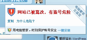 4.08日中午3點左右發(fā)現(xiàn)網(wǎng)站被鑒定為危險網(wǎng)站,具體表現(xiàn):使用Ie、360瀏覽器打開網(wǎng)站出現(xiàn)攔截提示,使用QQ給好友發(fā)網(wǎng)站出現(xiàn)危險網(wǎng)站提示!對于無圖無真相的圍觀者,小編想說:請看圖
