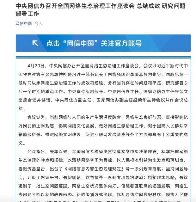 國家網信辦:對網站平臺有意縱容網絡生態問題將從嚴從重查處