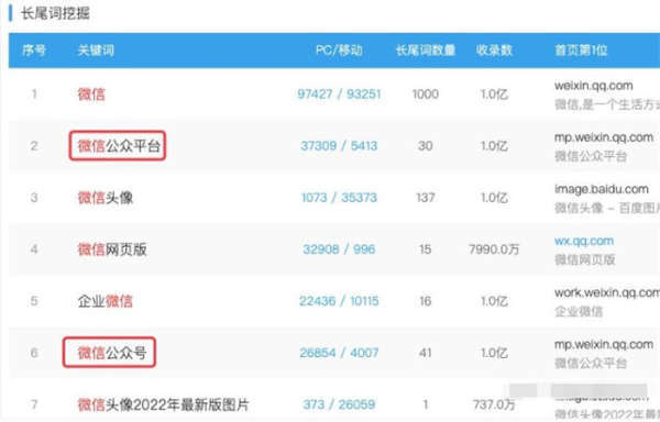 比如我要寫微信公眾號這個主題,哪些關鍵詞是流量詞呢?你肯定會說“微信”、“公眾號”這不就是流量詞嗎?是的,他們是流量的詞,但他們不是我要的流量詞。當用戶搜微信或者公眾號,你知道他們的具體需求嗎?