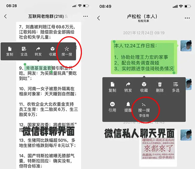 “搜一搜”最方便的是,只要你在微信內(nèi)容復(fù)制任何東西都會出現(xiàn)“搜一搜”的界面。微信群、個人聊天窗口都可以。這也間接增加了搜一搜的MAU。