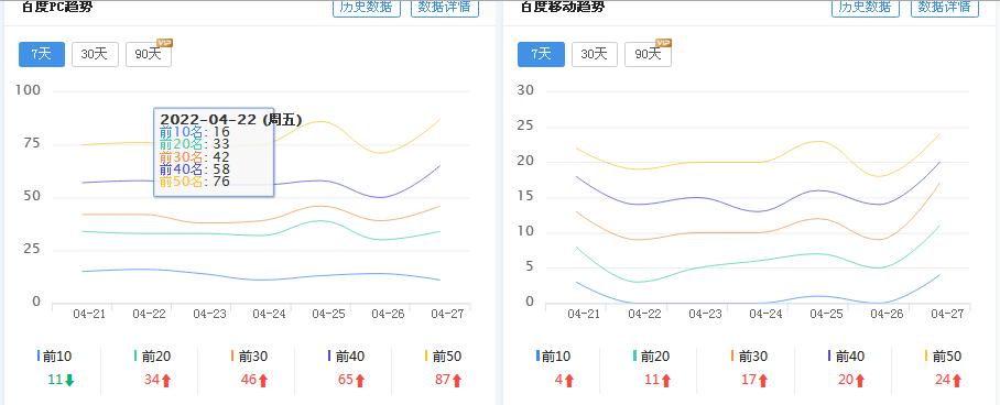 移動端:前10名上漲了4個關鍵詞、前50名上漲了6個關鍵詞;