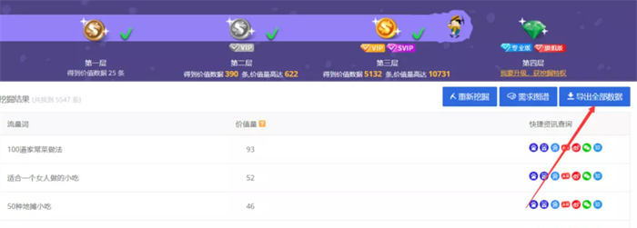 5118的挖詞工具是需要付費的,不過也不貴,300一年,搞個最初級的VIP就夠用了。購買之后來到關鍵詞挖掘,選擇「移動流量詞」然后輸入你行業的關鍵詞去挖掘就行。為什么選擇移動流量詞呢?因為現在主要還是用手機端的比較多,所以選擇移動流量詞挖掘即可。當然這里只介紹一種挖詞方法,5118還有非常多挖詞工具,大家自行琢磨吧。都是傻瓜式的。