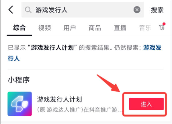 1、抖音搜索【游戲發行人計劃】,點擊進入平臺頁面。