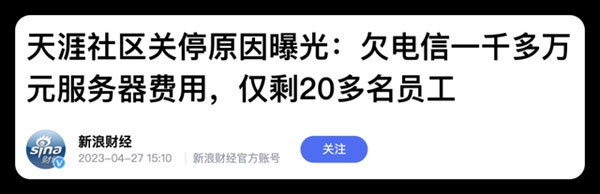 而且據(jù)了解,天涯的域名其實(shí)已經(jīng)在 3 月底被封,4 月 24 日才正式停止運(yùn)營(yíng)。