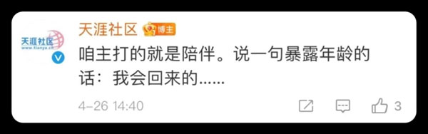 當(dāng)然,目前還不能正式宣判天涯「死刑」,因?yàn)槿思夜傥⒔o了這么一句話,「我一定會(huì)回來(lái)的」。