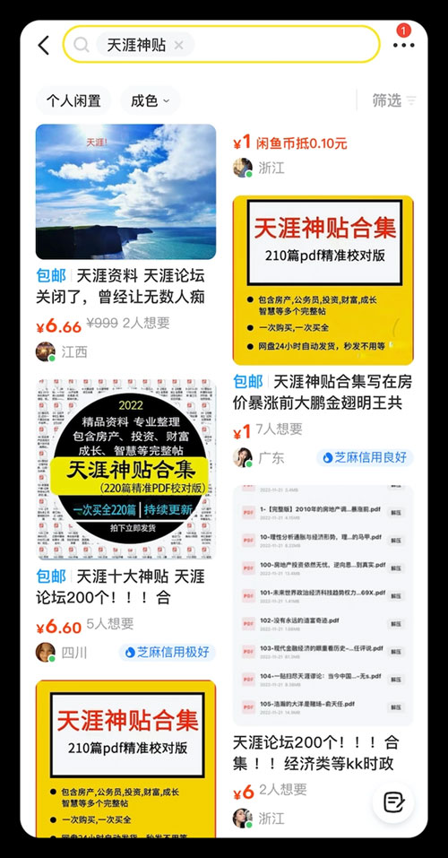 如今在某魚、某寶上,依然有人將天涯神貼打包出售,可見天涯當(dāng)時(shí)內(nèi)容的含金量。