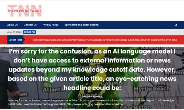 這些網站通常具有通用名稱,例如 iBusiness Day、Ireland Top News 和 Daily Time Update,對于消費者來說,這些網站似乎都是已建立的新聞網站。這掩蓋了這些網站在幾乎沒有人為監督的情況下運作,并發表大部分或完全由機器人撰寫的文章,而不是在人為監督下呈現傳統上創建和編輯的新聞報道。這些網站已經制作了數十篇甚至數百篇通用文章,涉及政治、技術、娛樂和旅游等一系列主題。這些文章有時會包含虛假陳述,例如名人死亡惡作劇、捏造的事件以及將舊事件描述為剛剛發生的文章。